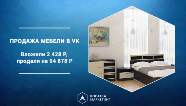 Продвижение мебели в группе в Вк: вложили 2 428 ₽, продали на 94 878 ₽